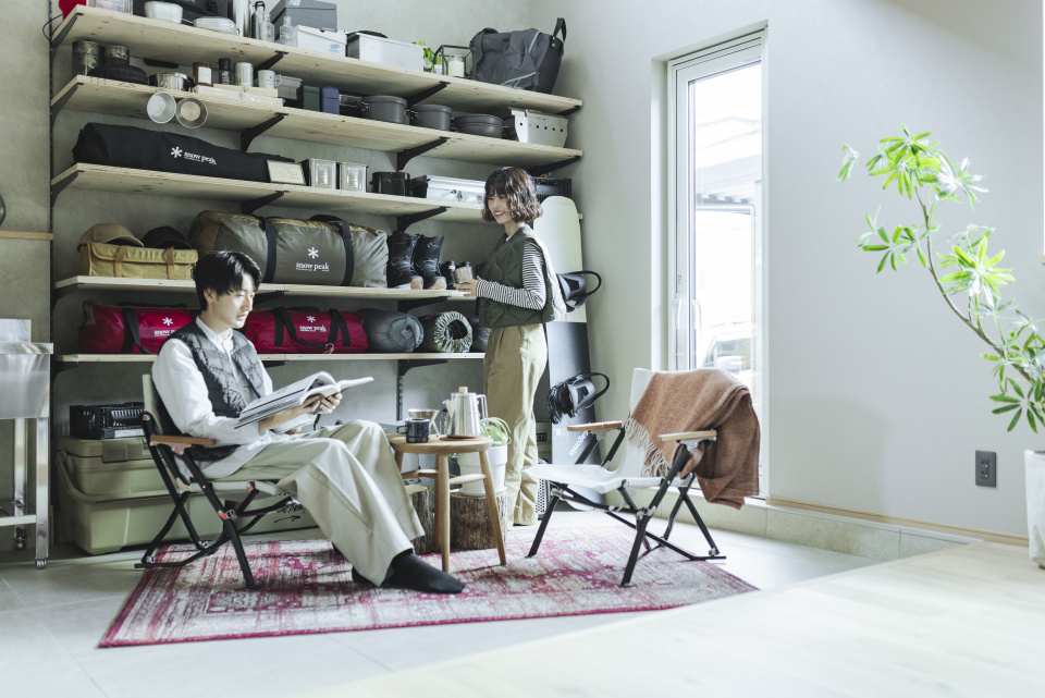 アウトドア好きが叶えた、広い土間の家 data エリア 北海道札幌市 施工店 札幌店 広さ 30〜34坪 lineup スノーピーク Photo gallery クリックで拡大 木×グレージュのおしゃれなアーバンアウトドアハウス お気に入りのギアを飾れるこだわりの土間は、床暖房入りでいつもぽかぽか テントや釣り道具などを乾かしたり、ラグを敷いて第二のリビングとしても使えます 土間から続くテラスドアからギアを受け渡しできるので、アウトドアがもっと身近に